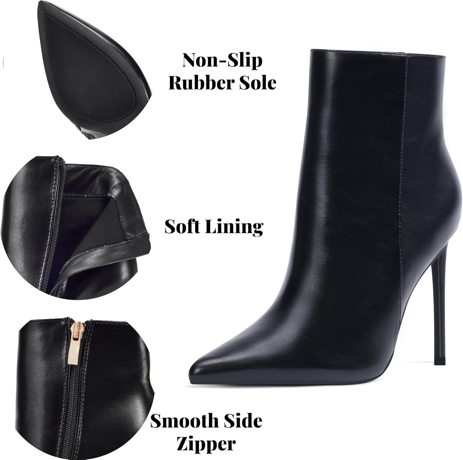 - 👢Intimate Detail Design: .The cute stiletto ankle boots feature a stable heel that provides excellent traction and stability and padded insole for “cloud-like comfort” that make you confortable enough to wear all day long.The zipper are enough firm and smooth sliding to make you more easier to slip on and off your comfy pointed toe booties.