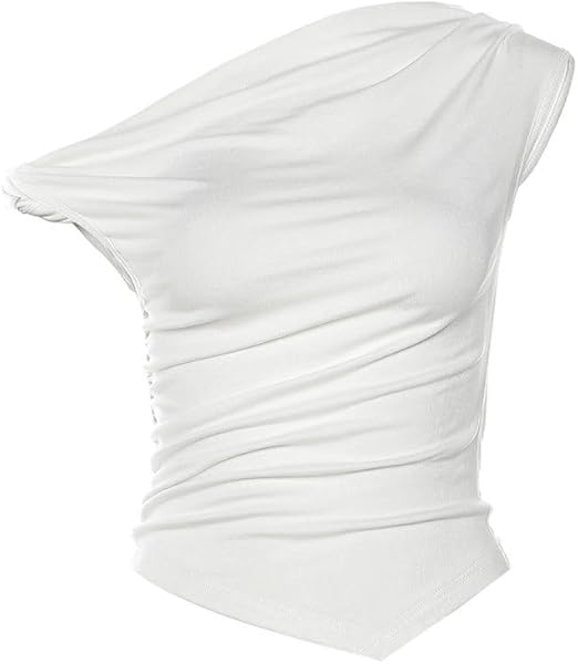 Women’s Off Shoulder Casual Short Sleeve Shirt Women’s Slim Fit Cotton T-Shirt Irregular Hem